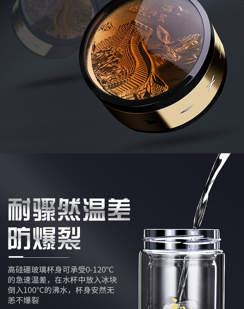 雙層玻璃杯男女便攜茶水分離耐熱加厚大容量高檔茶水杯子定制