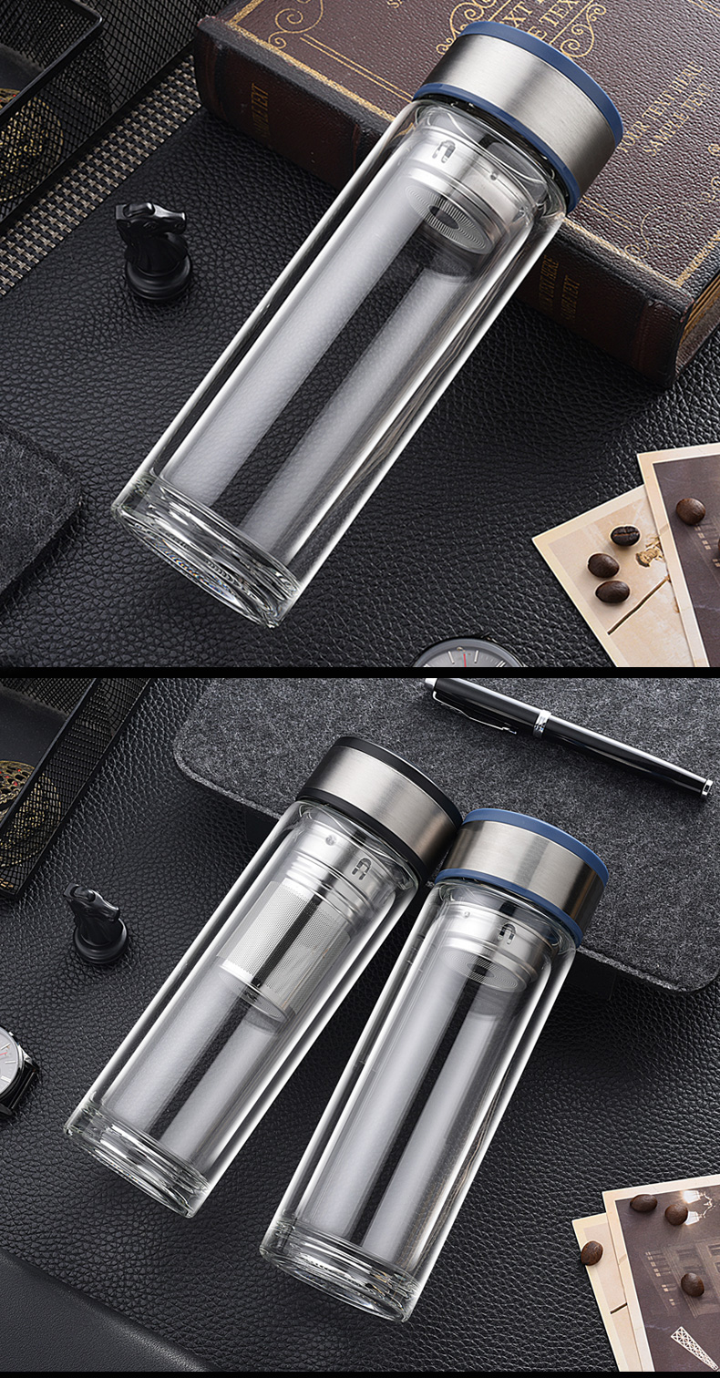 雙層水晶玻璃杯辦公家用泡茶杯耐熱加厚禮品杯子定制刻字印字LOGO