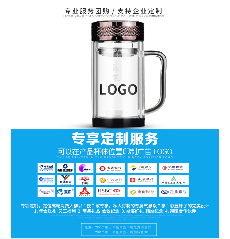 廣東蕾洛商用廚房設備定制高檔雙層水晶玻璃杯商務帶手柄水杯