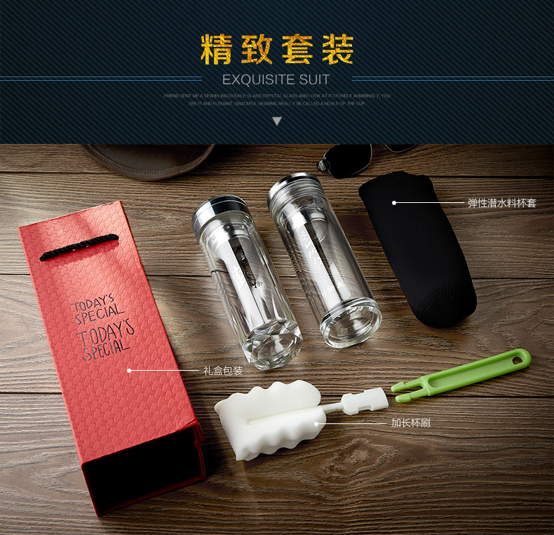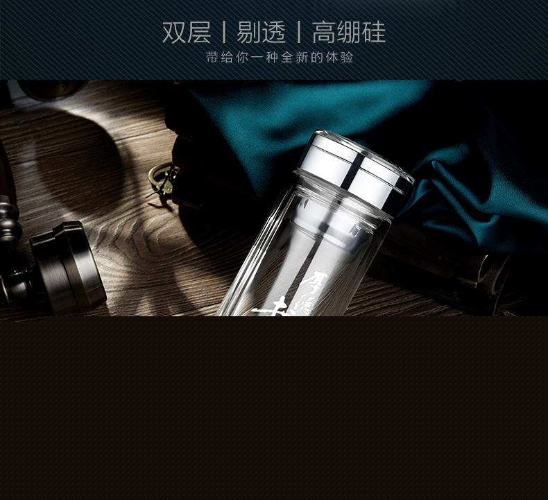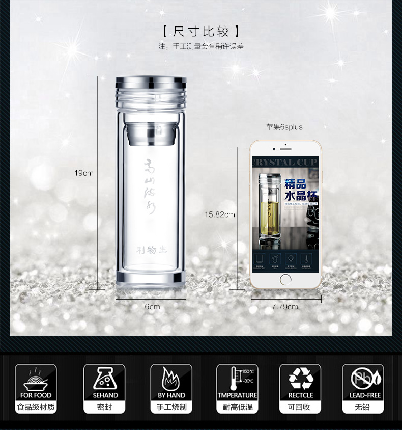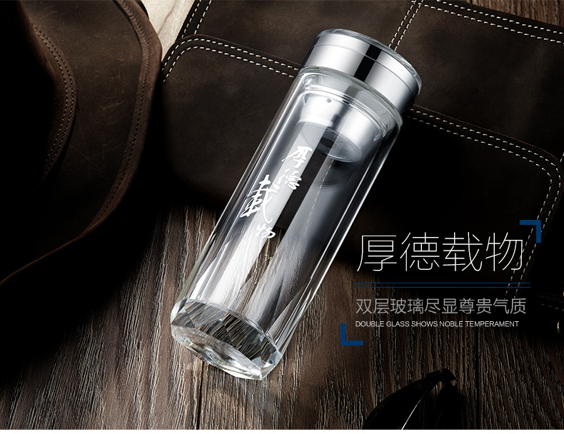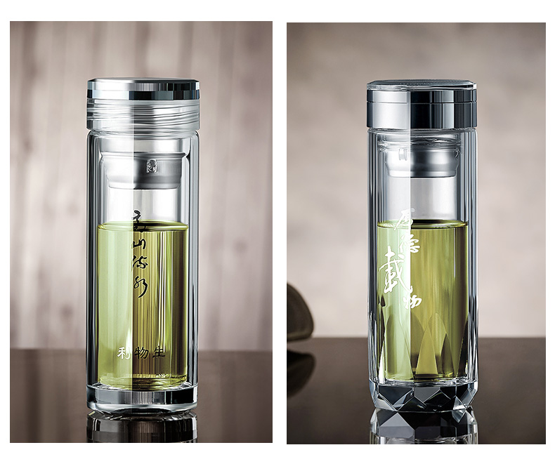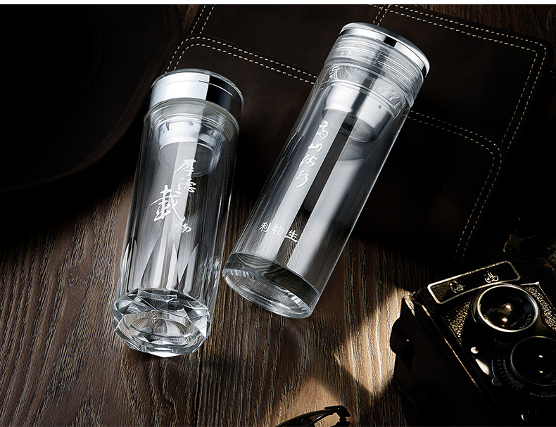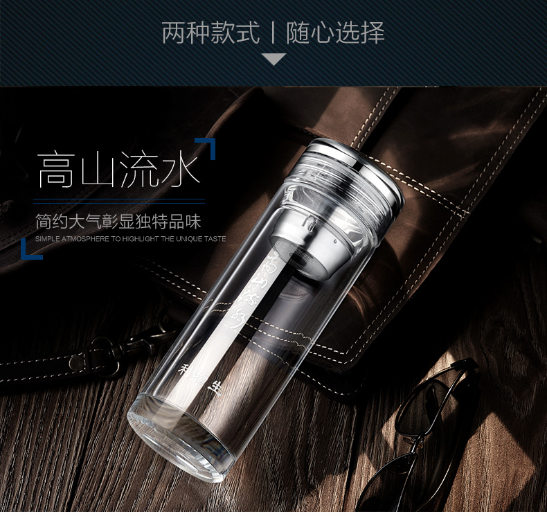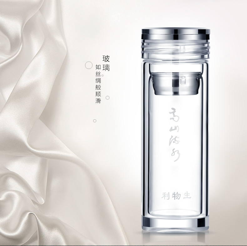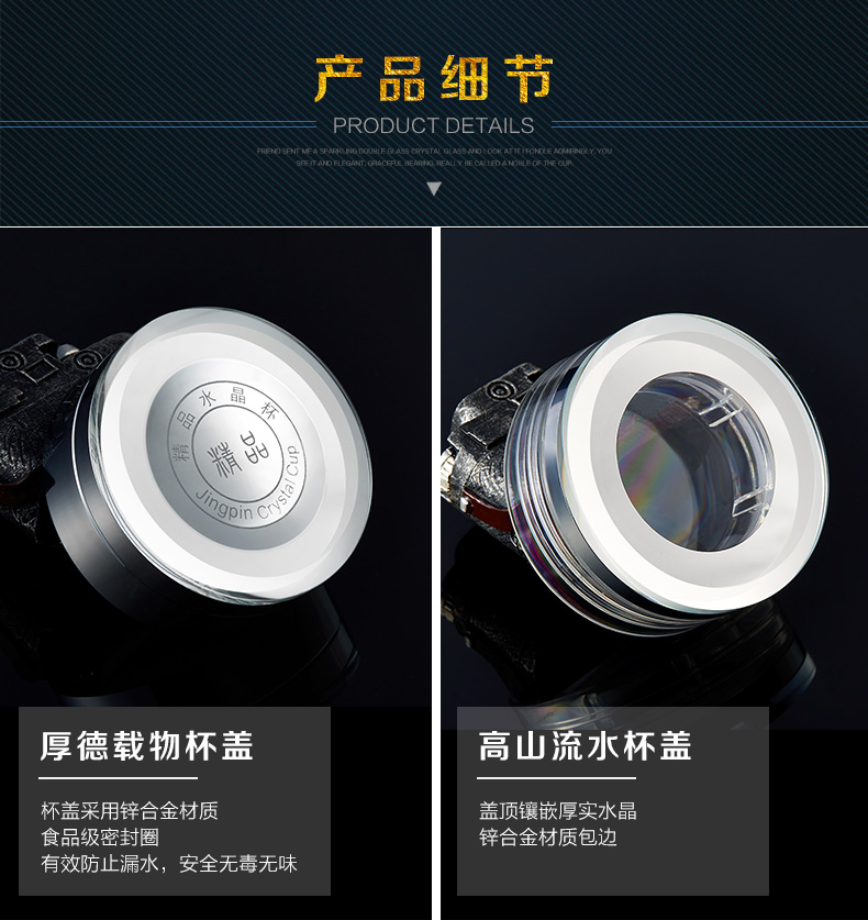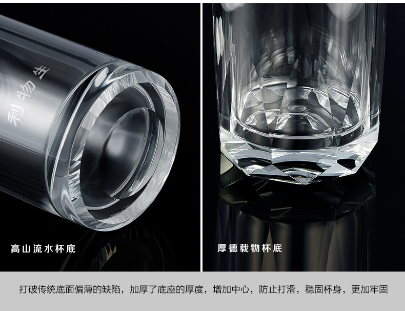 創(chuàng)意雙層水晶高山流水玻璃杯帶蓋茶杯批量訂定制印LOGO