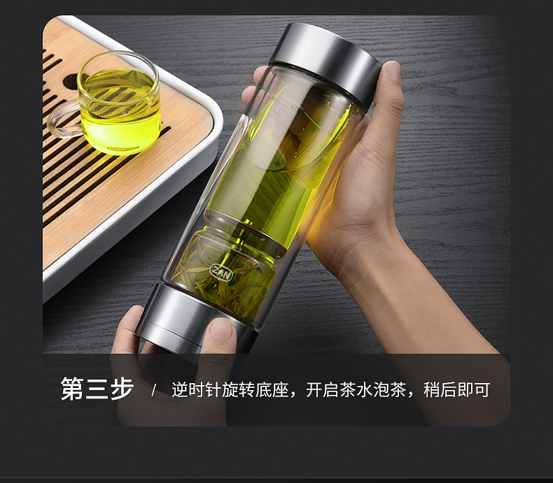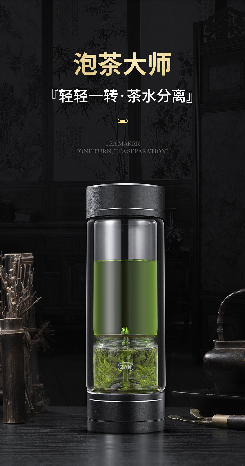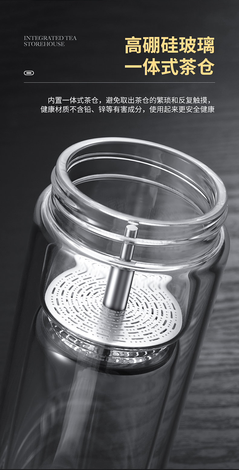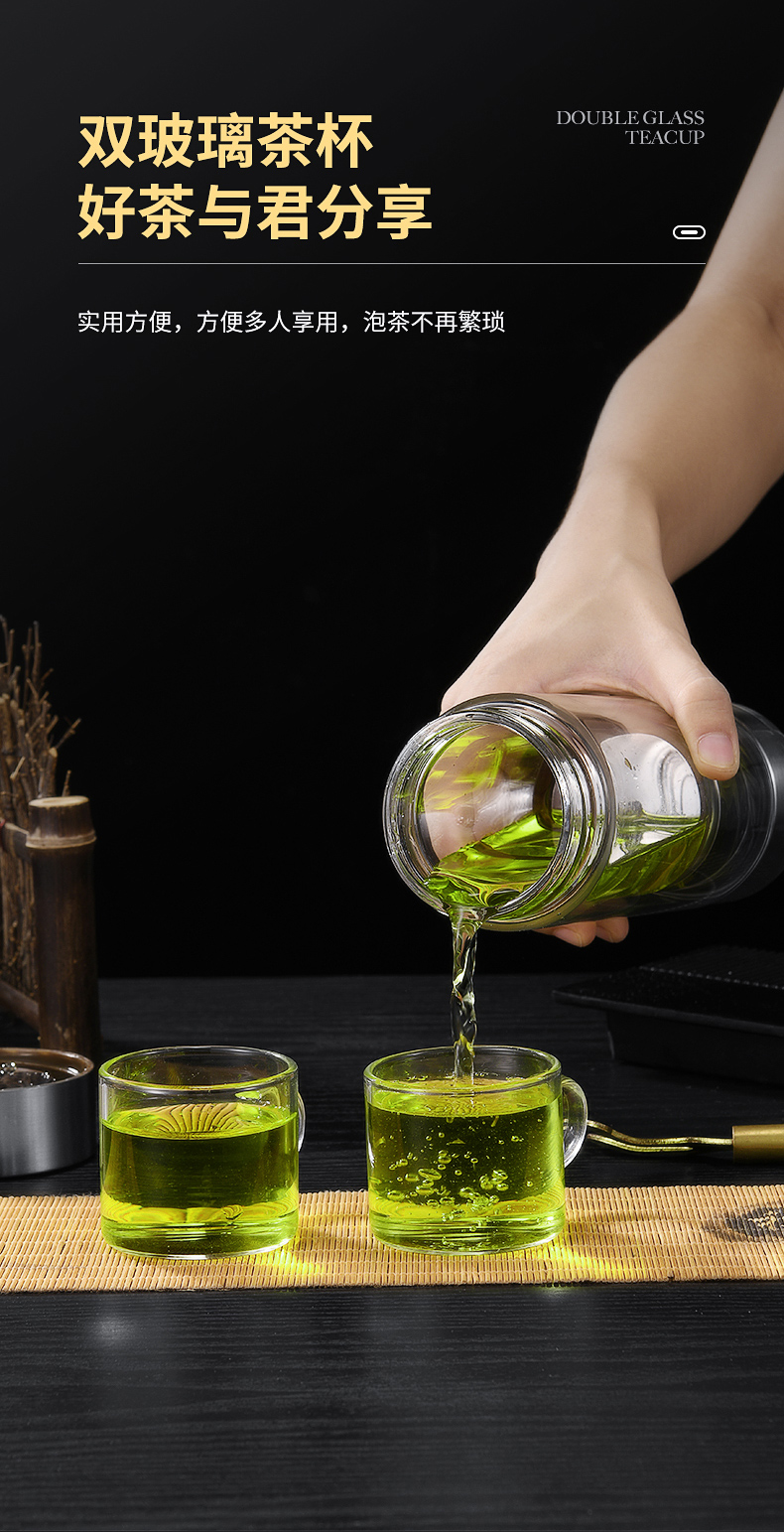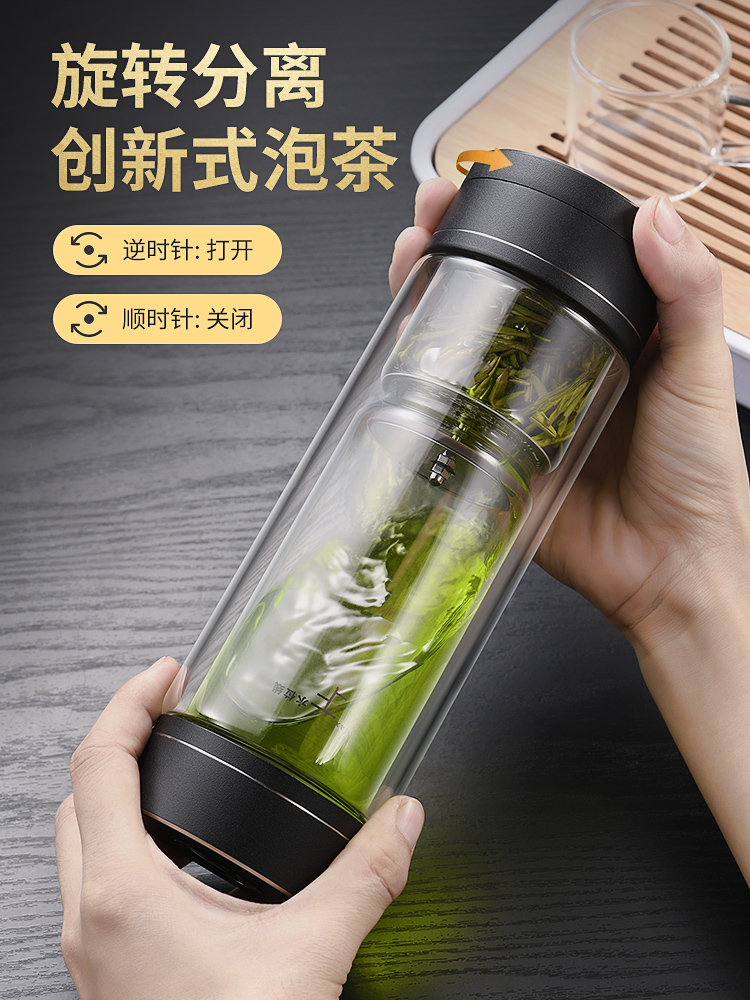 茶水分離杯雙層玻璃杯男女士高檔大容量便攜隔熱透明辦公泡茶水杯