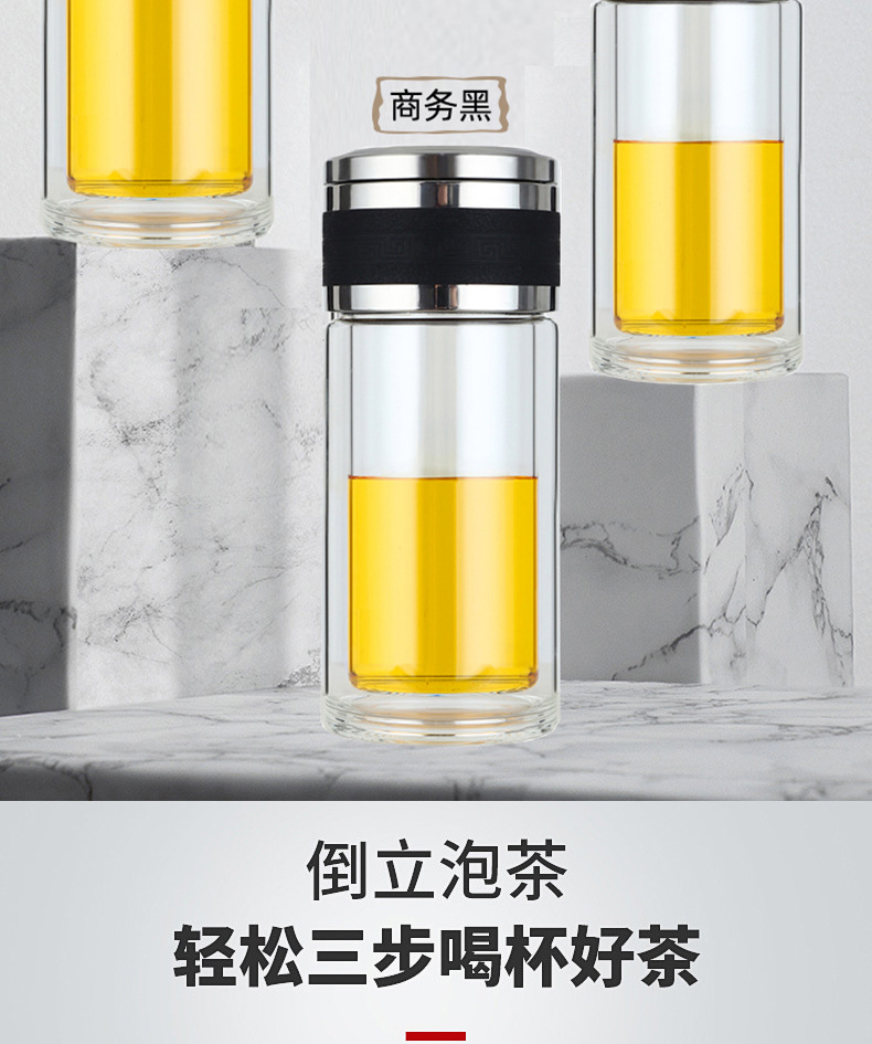 新款茶水分離泡茶杯雙層透明玻璃杯車載過濾水杯便攜辦公杯子定制