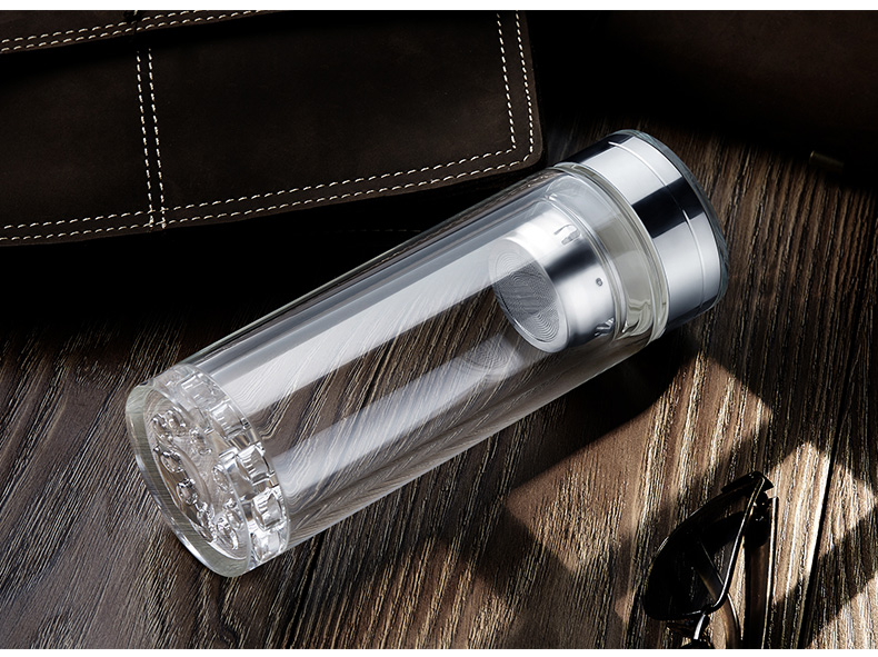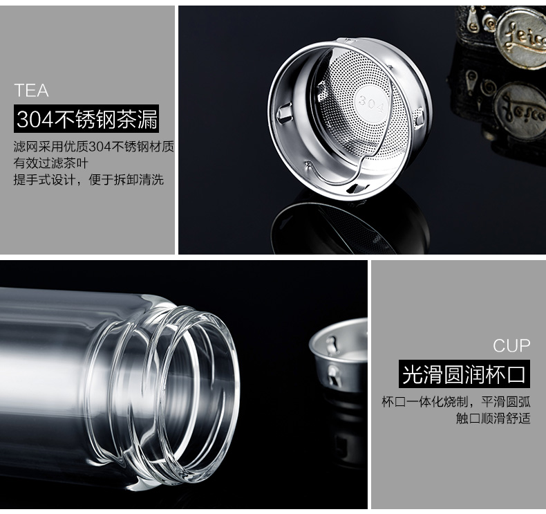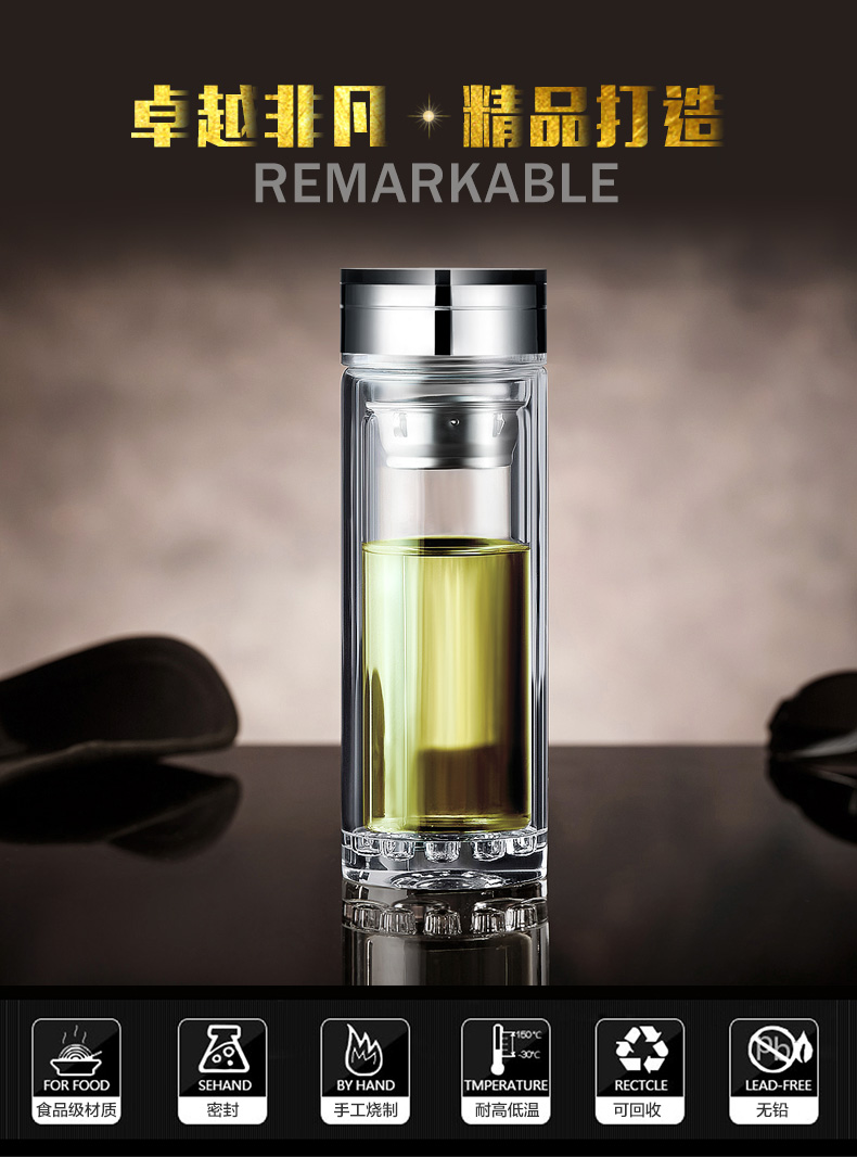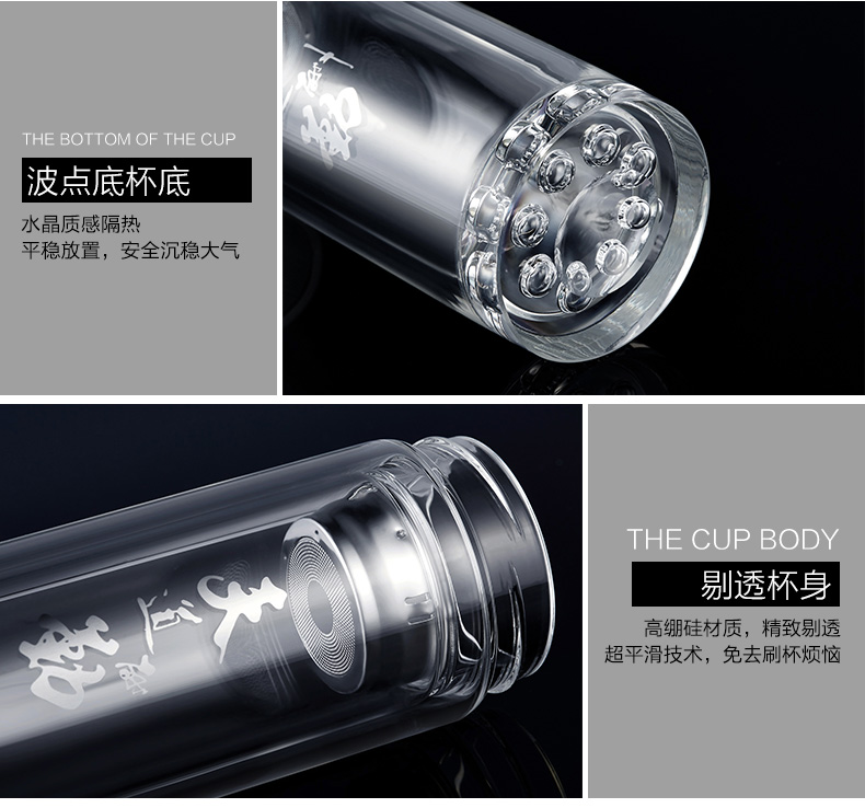 創(chuàng)意雙層波點底玻璃杯帶蓋茶杯批量訂定制印LOGO