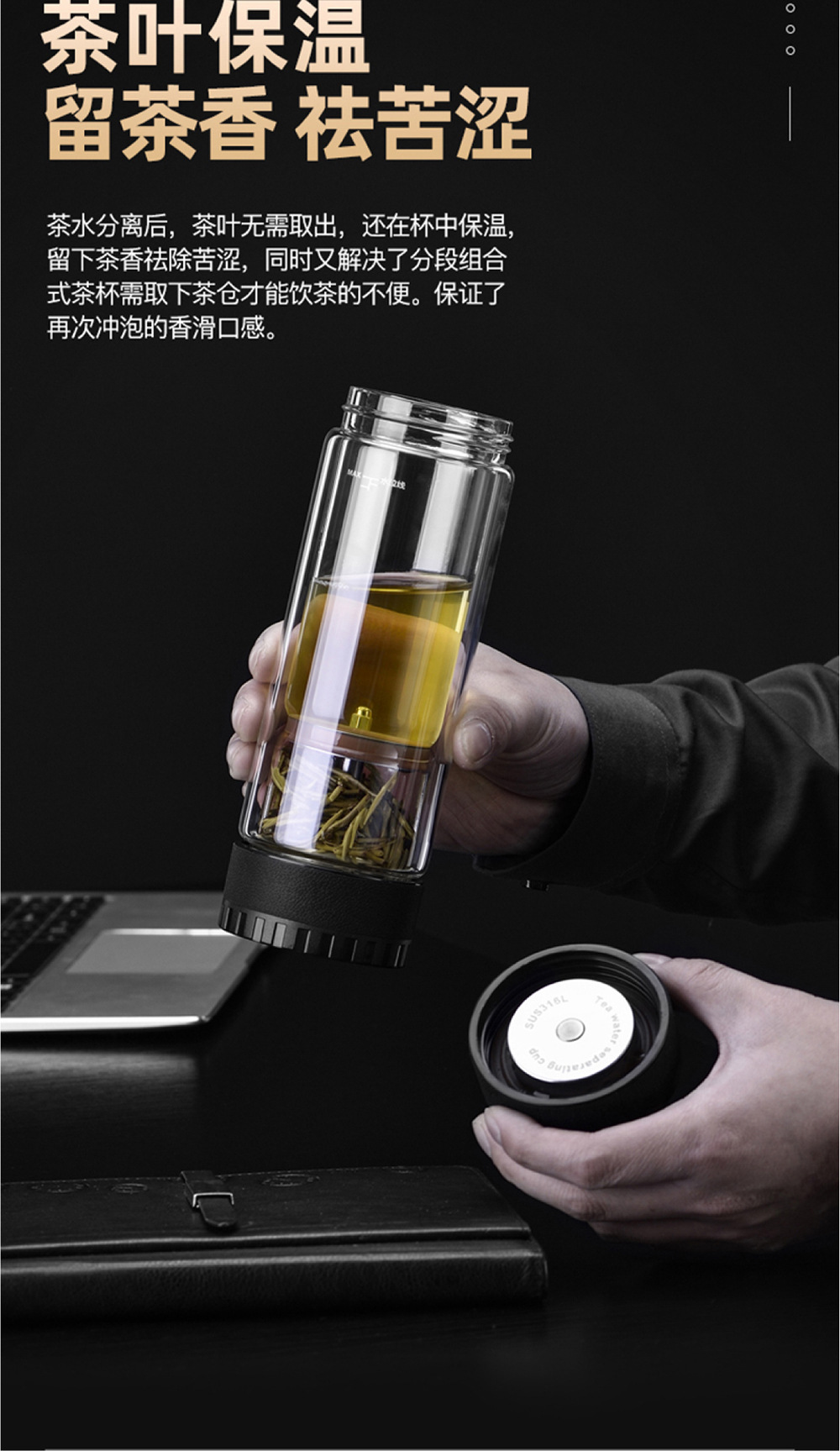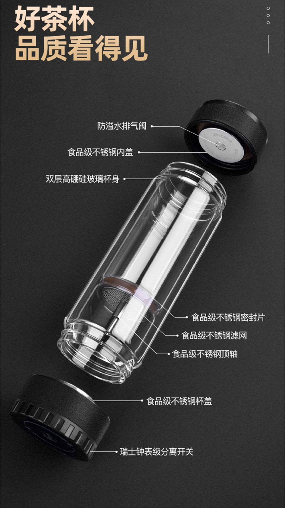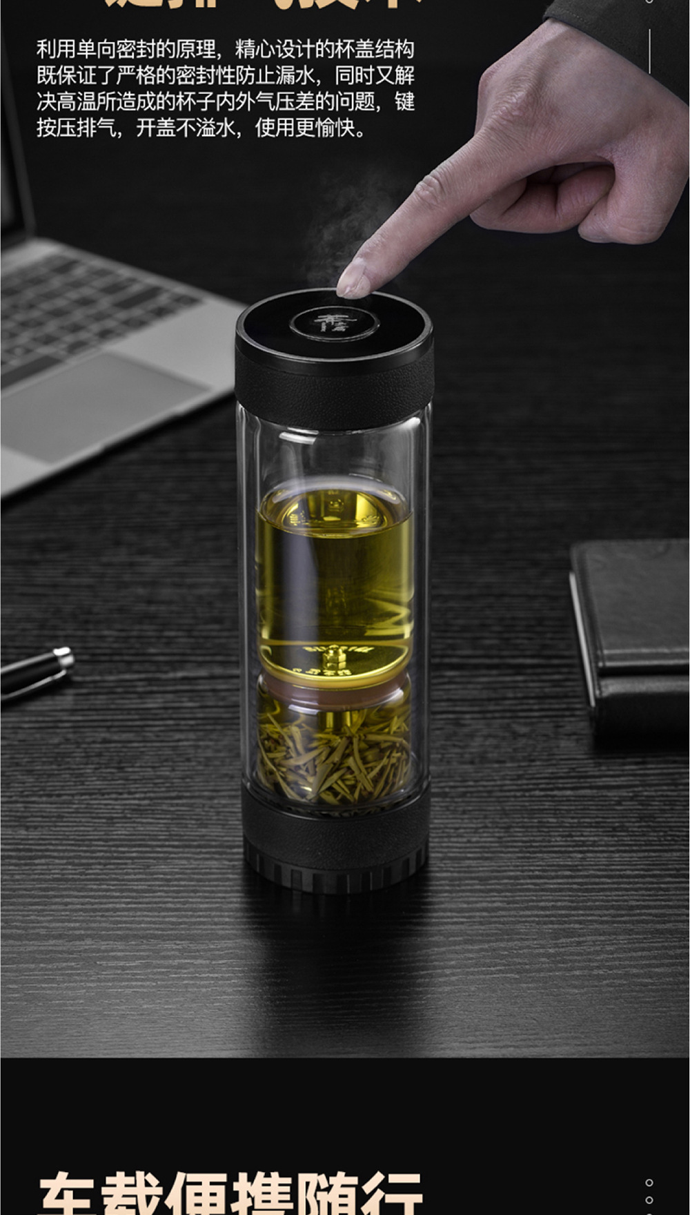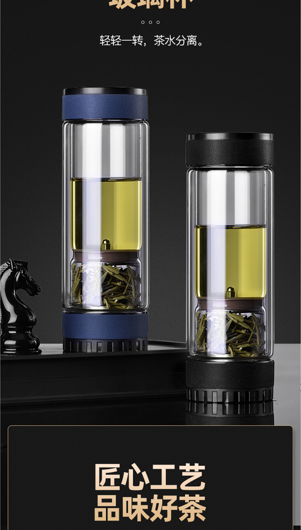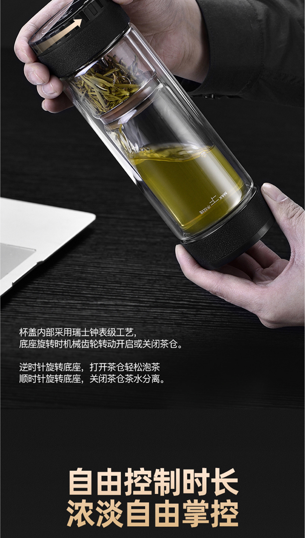 茶水分離泡茶師商務(wù)雙層玻璃杯定制禮品杯旋轉(zhuǎn)開(kāi)關(guān)茶杯印logo水杯