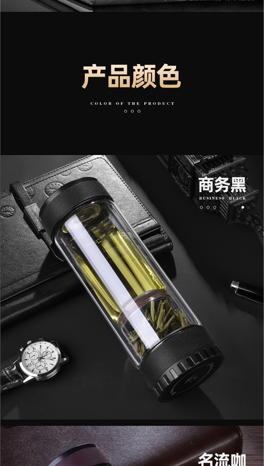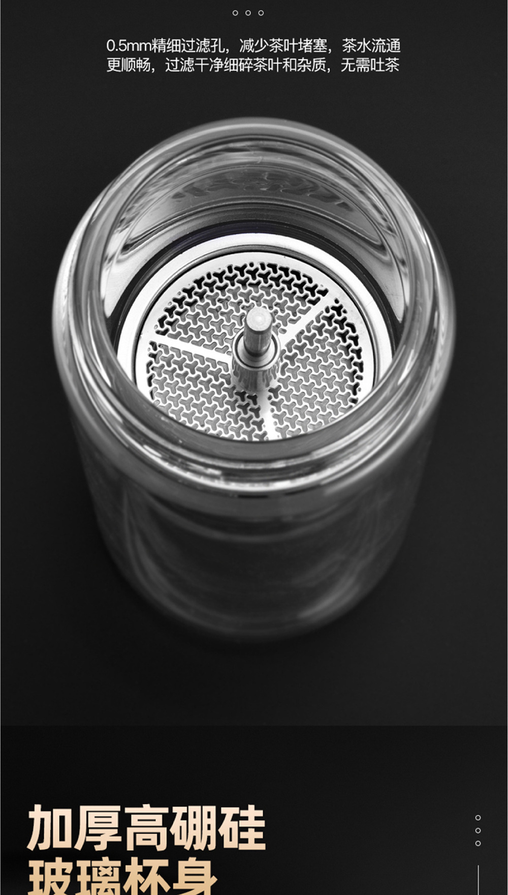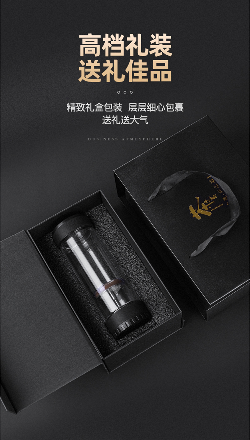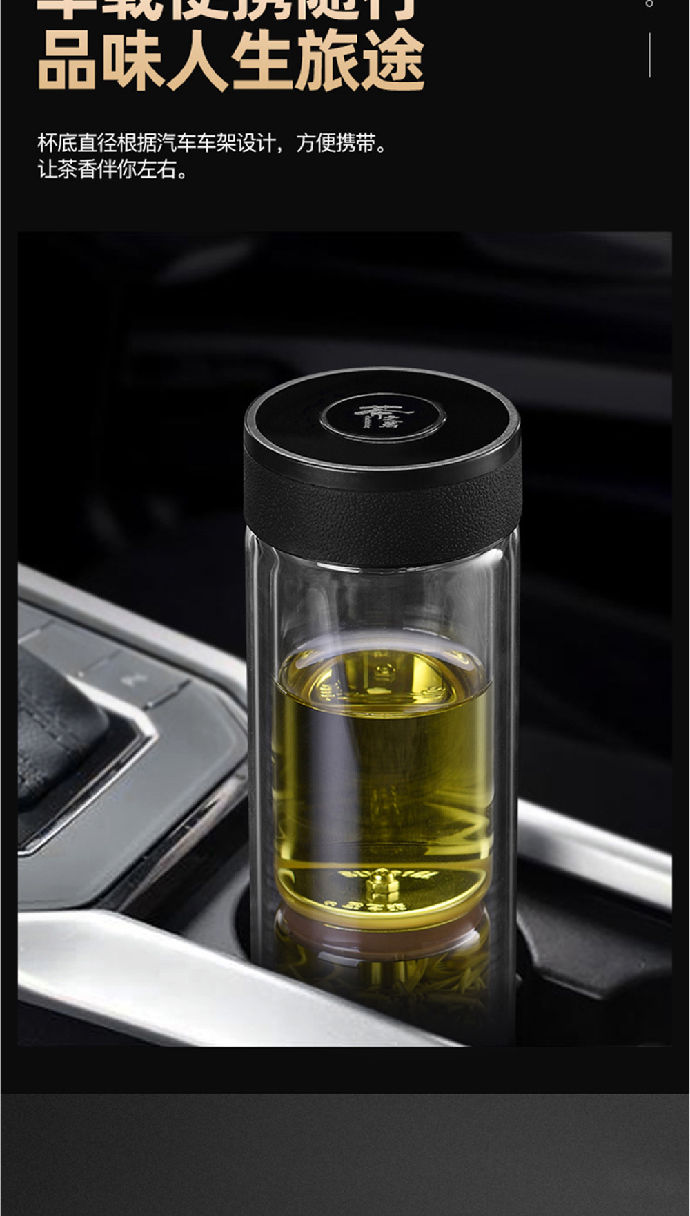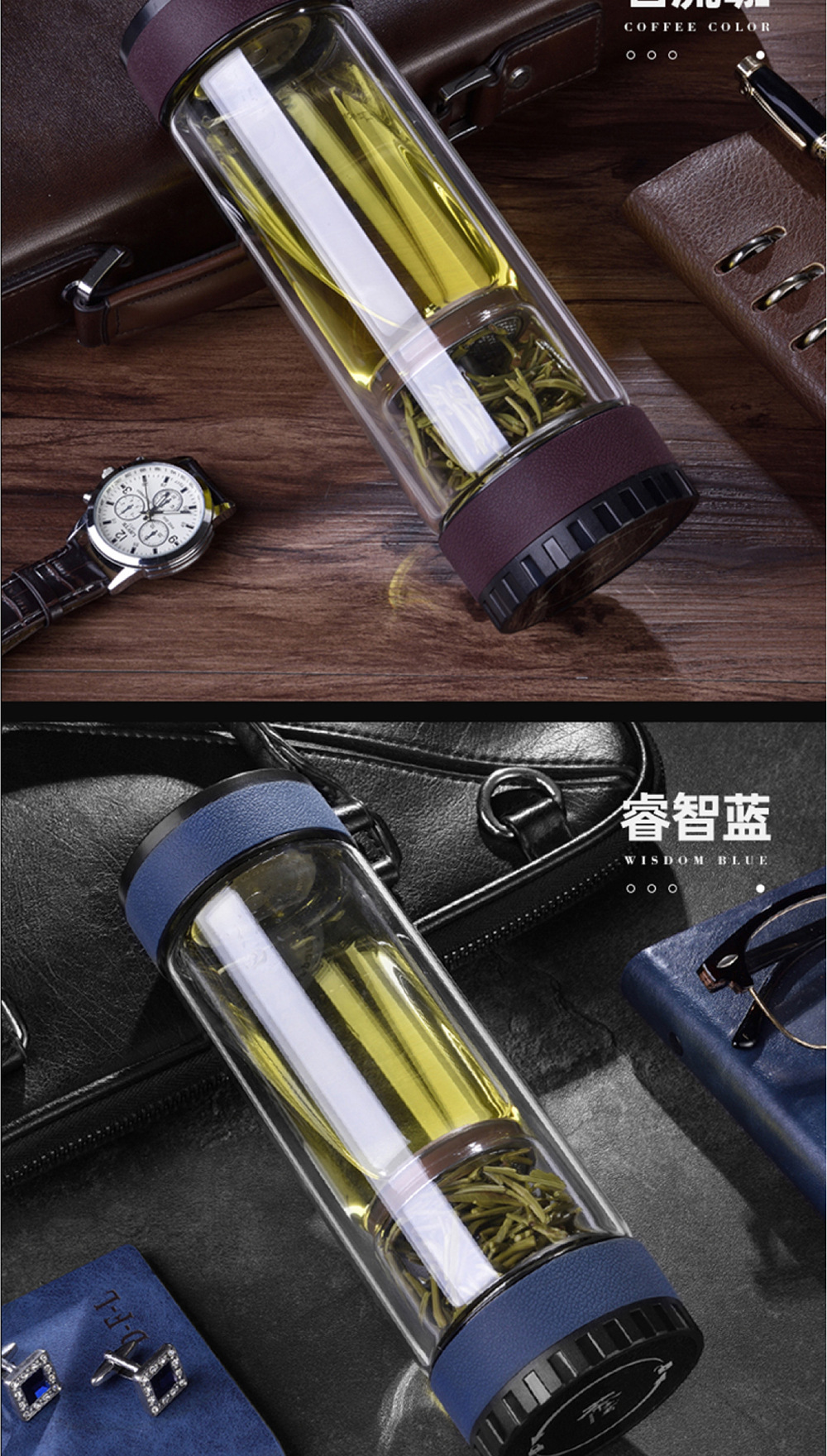 茶水分離泡茶師商務(wù)雙層玻璃杯定制禮品杯旋轉(zhuǎn)開(kāi)關(guān)茶杯印logo水杯