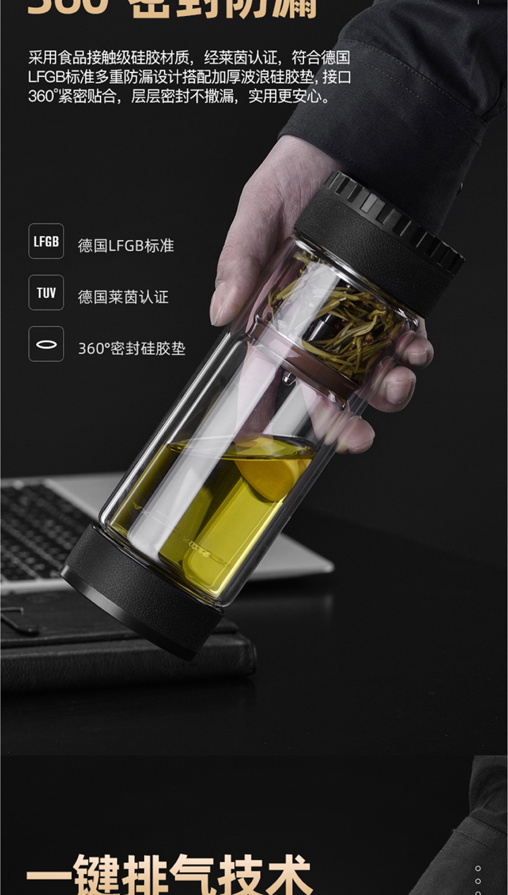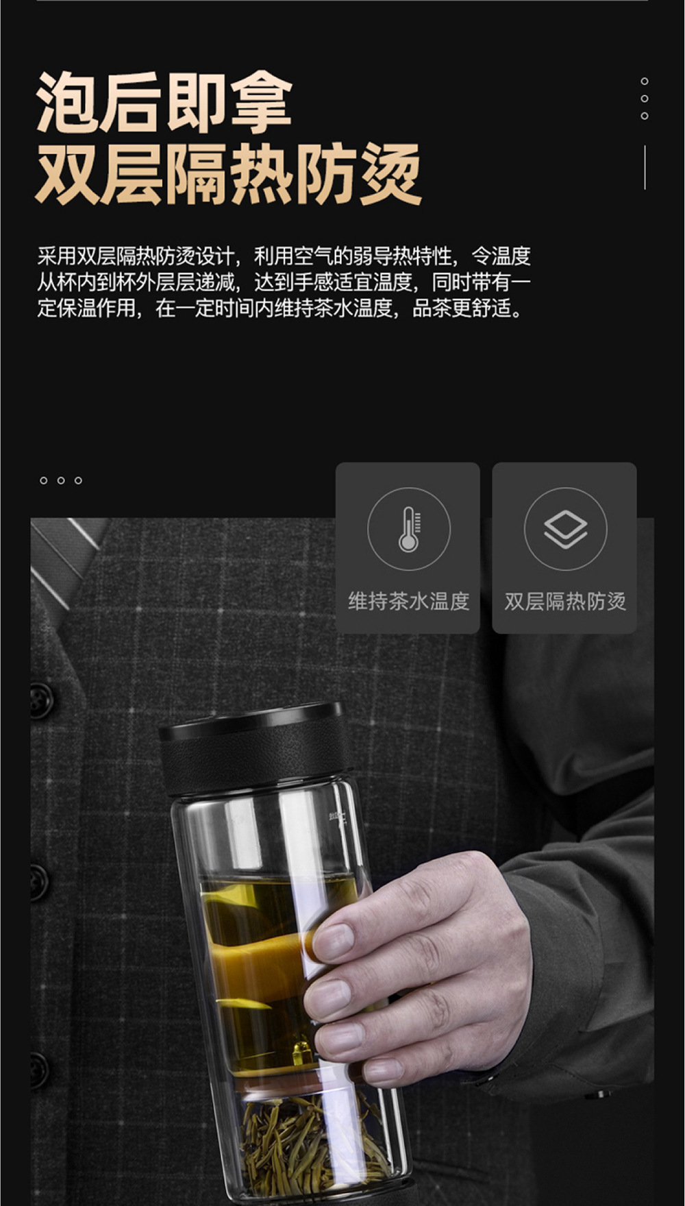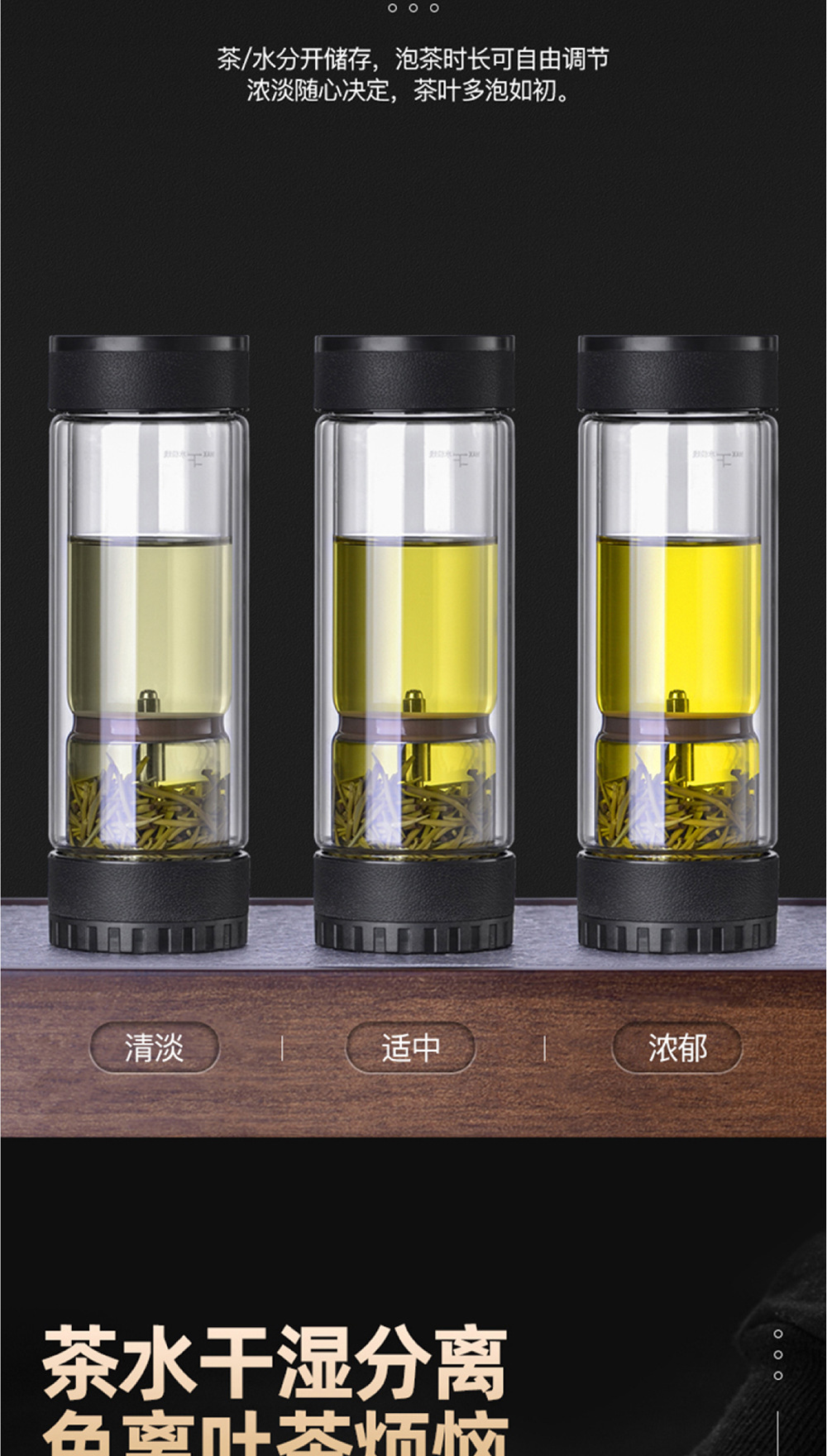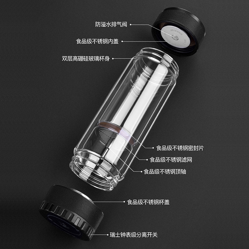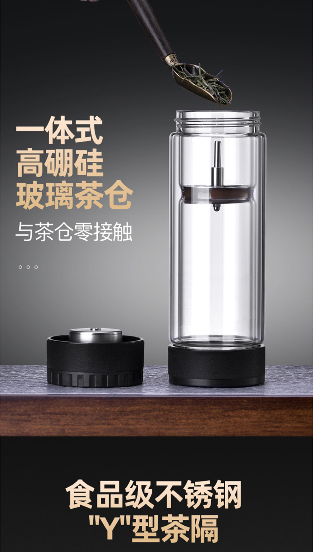 茶水分離泡茶師商務(wù)雙層玻璃杯定制禮品杯旋轉(zhuǎn)開(kāi)關(guān)茶杯印logo水杯