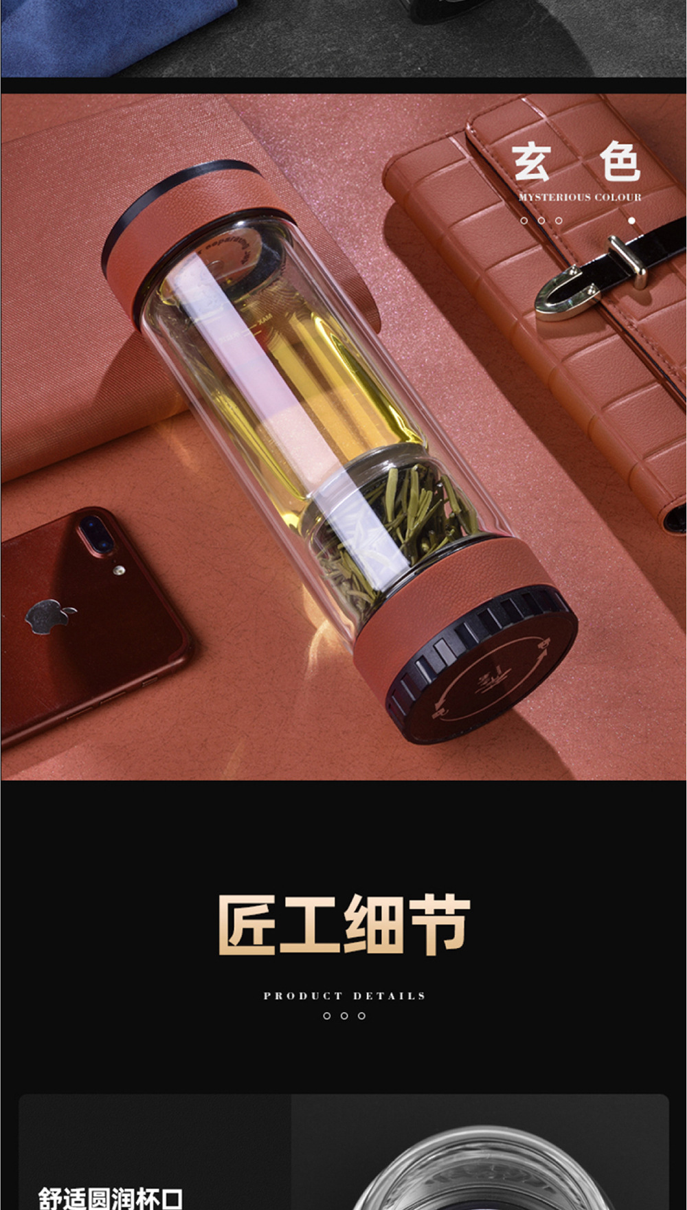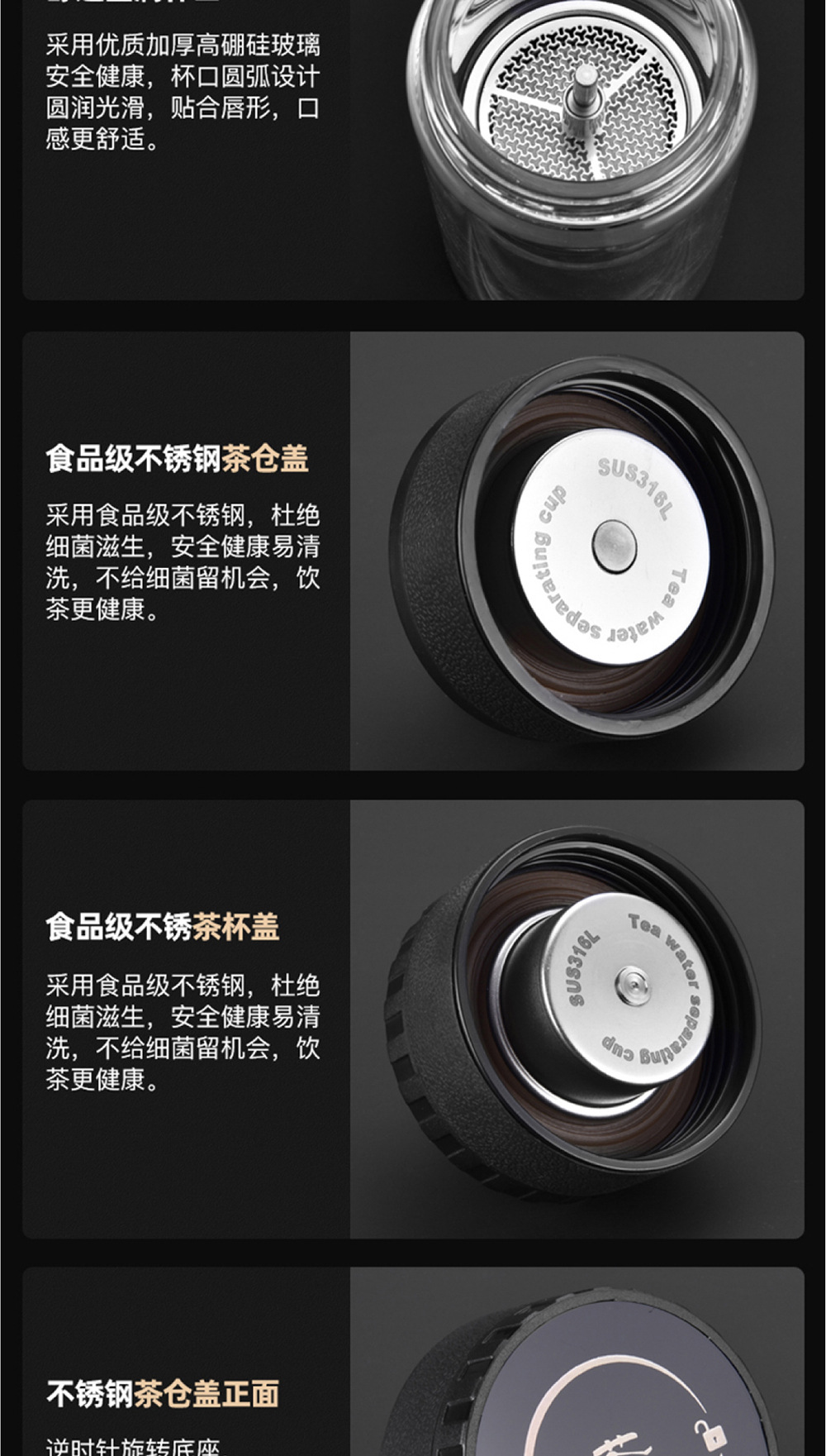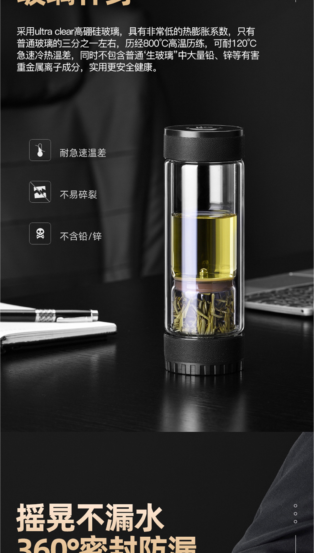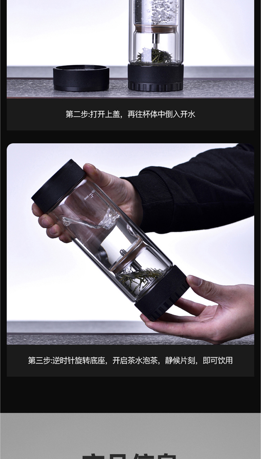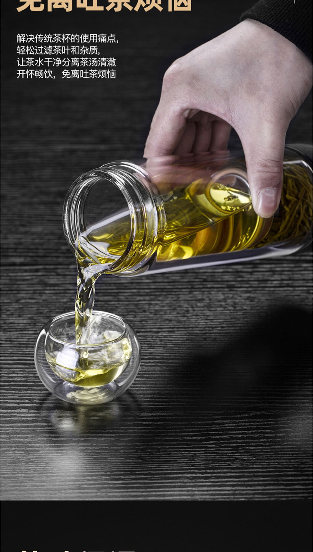 茶水分離泡茶師商務(wù)雙層玻璃杯定制禮品杯旋轉(zhuǎn)開(kāi)關(guān)茶杯印logo水杯