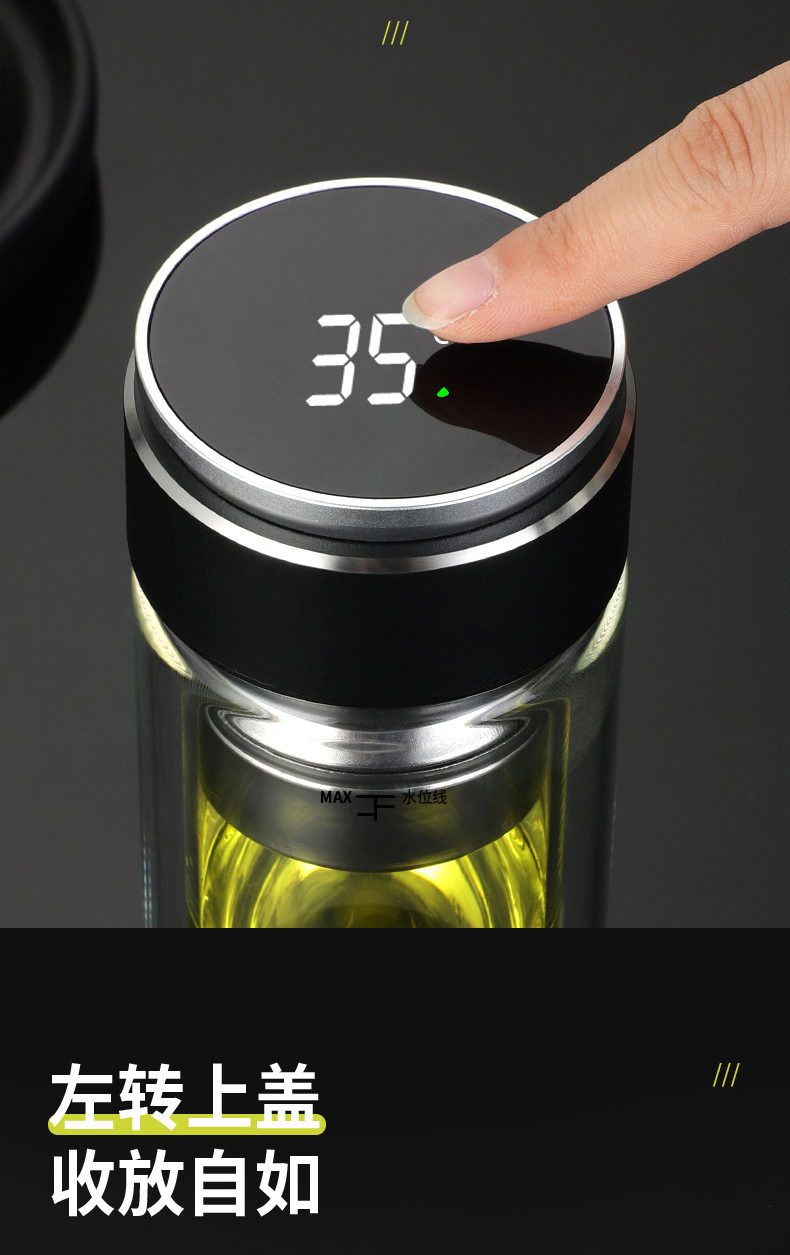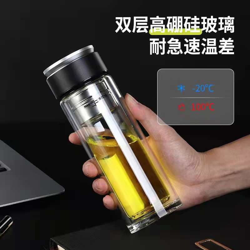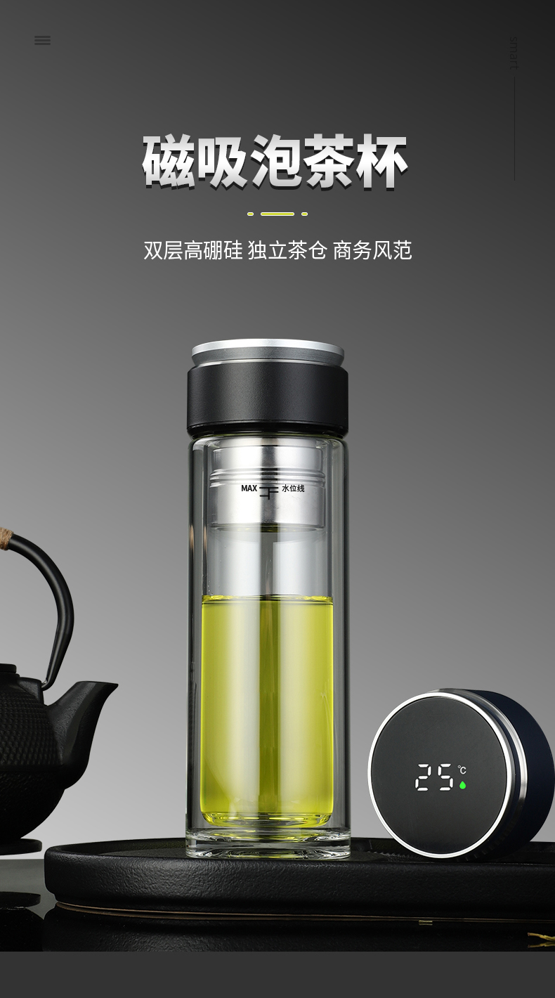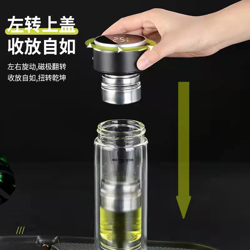 高檔智能磁吸茶水分離泡茶杯雙層透明便攜隔熱水杯水晶商務(wù)玻璃杯