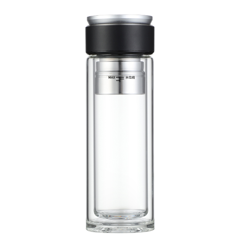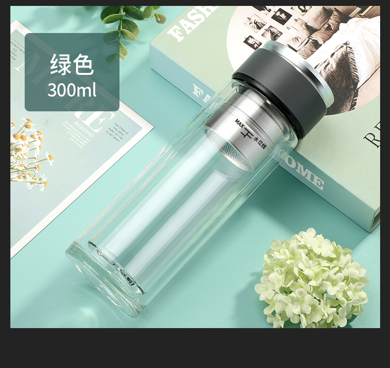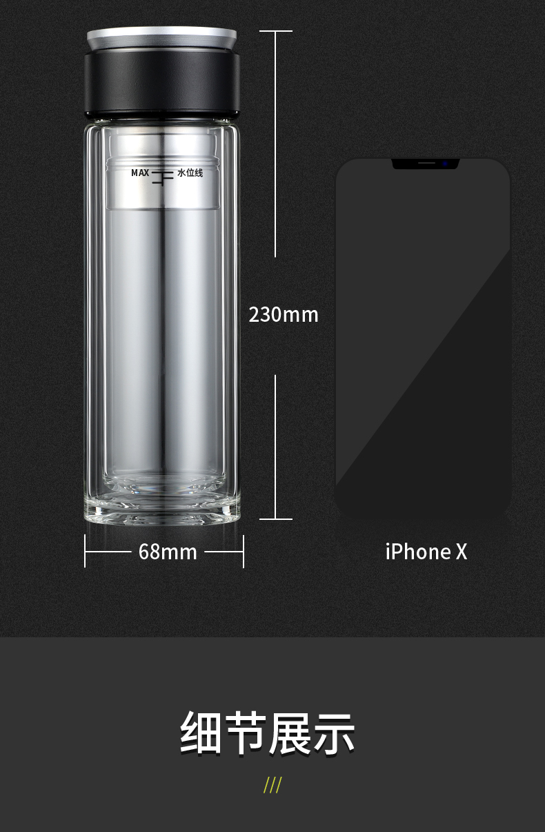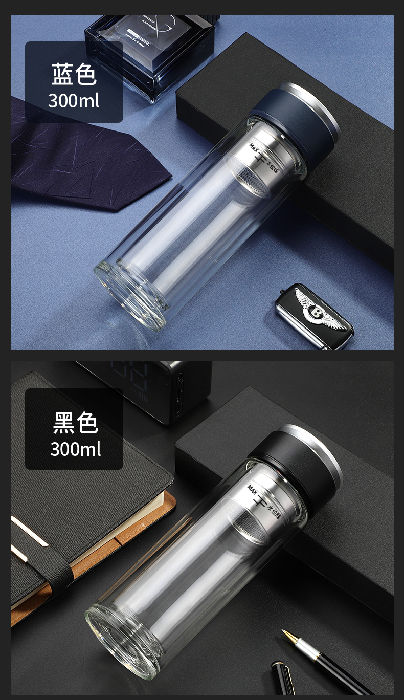 高檔智能磁吸茶水分離泡茶杯雙層透明便攜隔熱水杯水晶商務(wù)玻璃杯