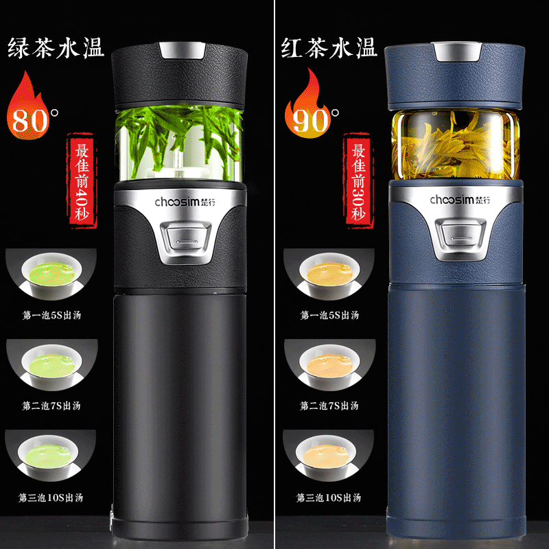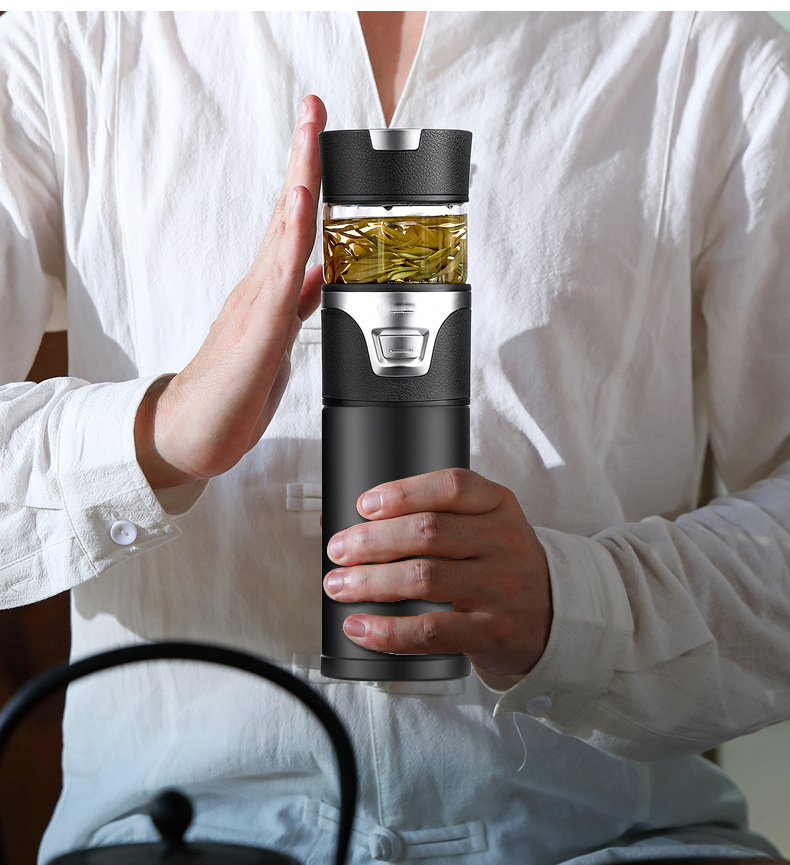 華為茶水分離不銹鋼保溫杯雙蓋