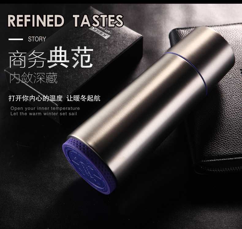 新款304不銹鋼高檔商務禮品保溫杯男便攜直身濾網茶杯