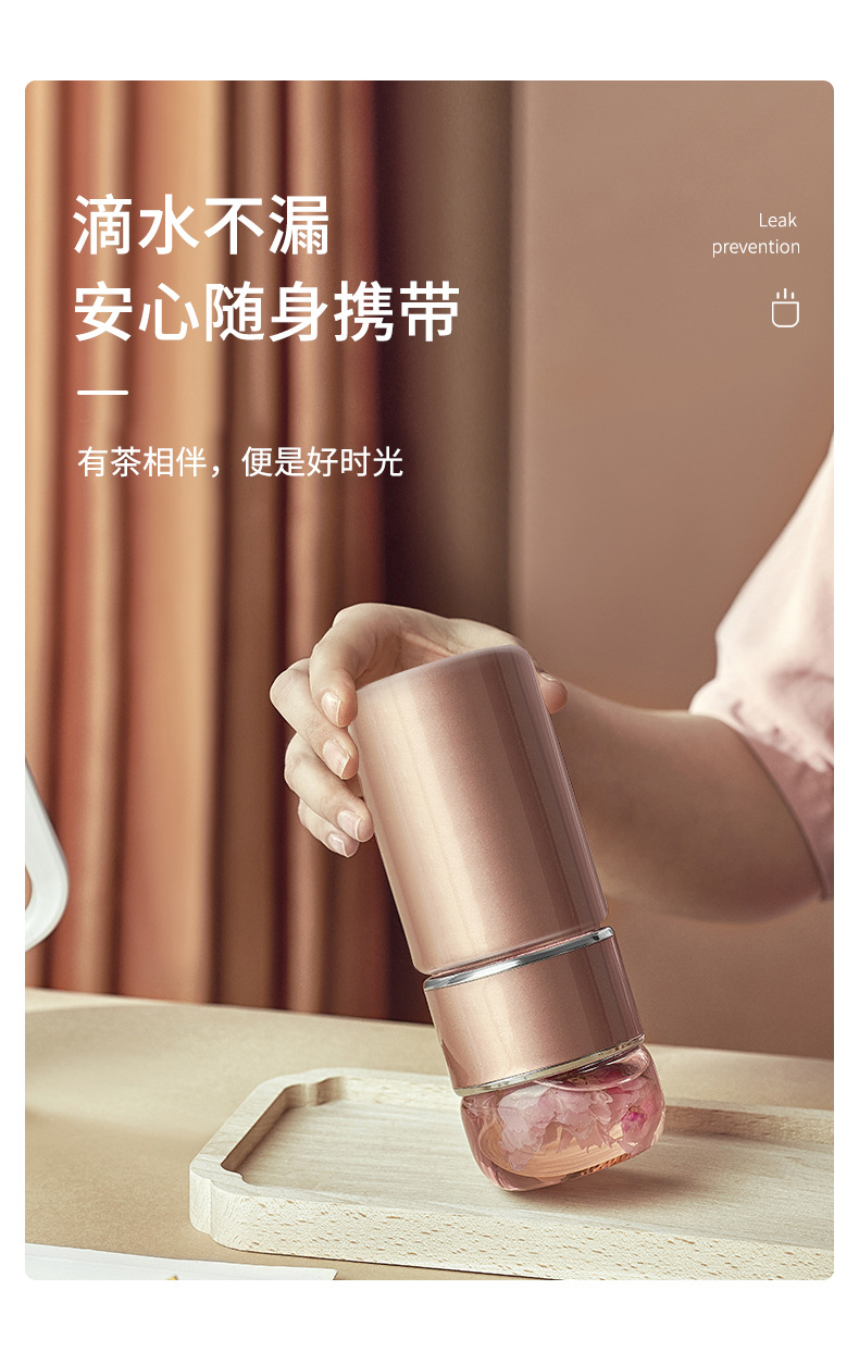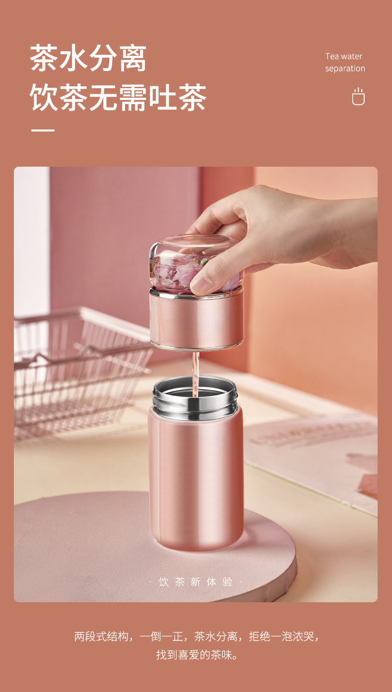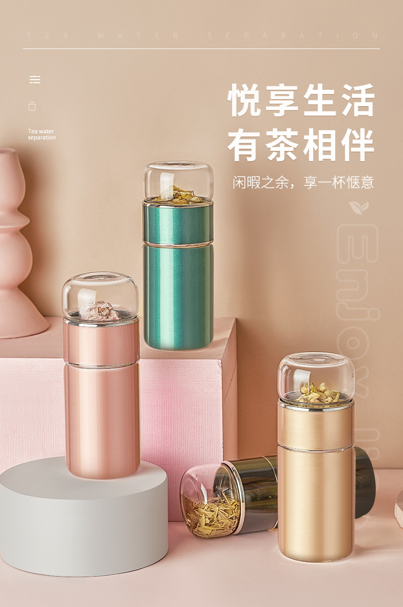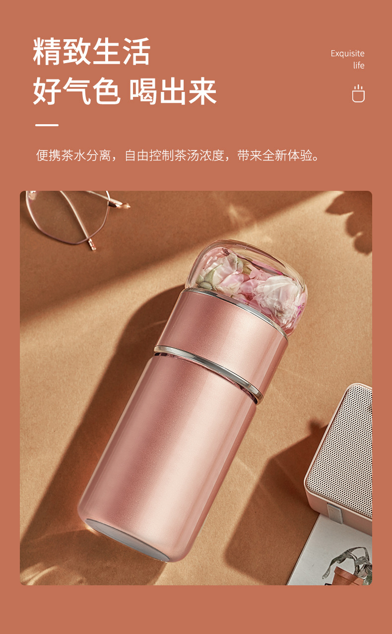 茶水分離泡茶杯子 便攜簡約雙層玻璃不銹鋼保溫杯花茶過濾隨性杯