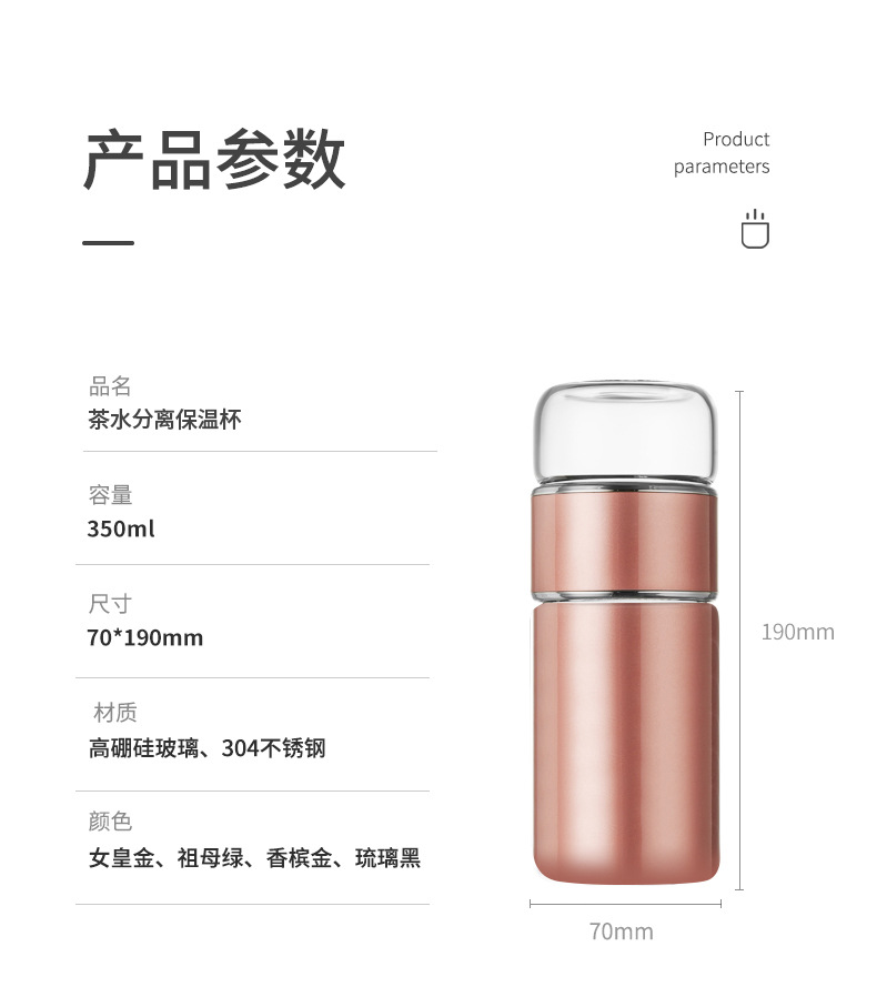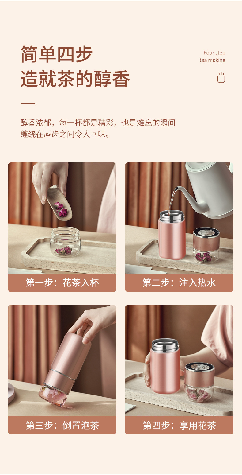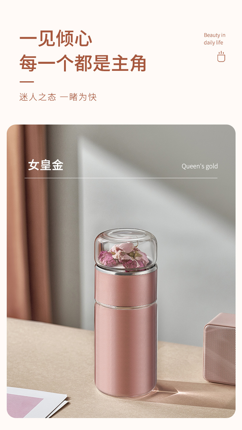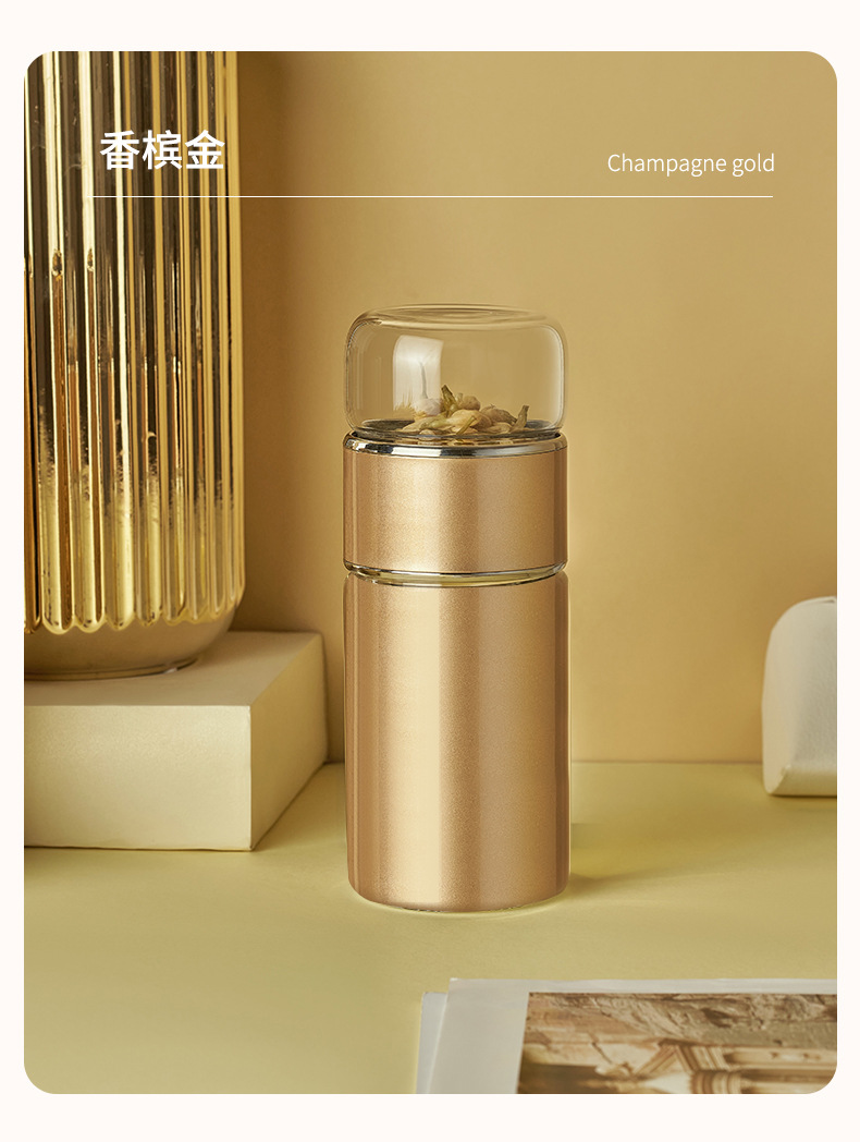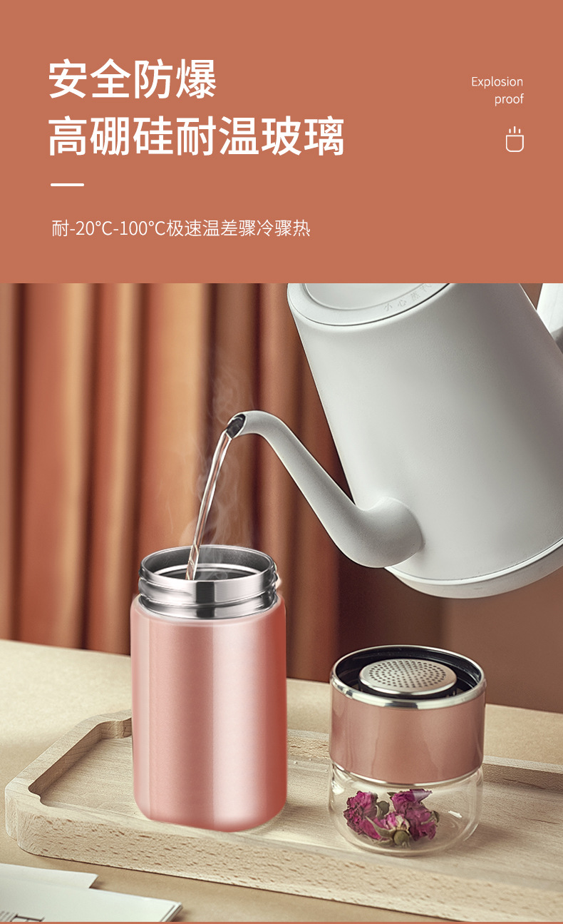 茶水分離泡茶杯子 便攜簡約雙層玻璃不銹鋼保溫杯花茶過濾隨性杯