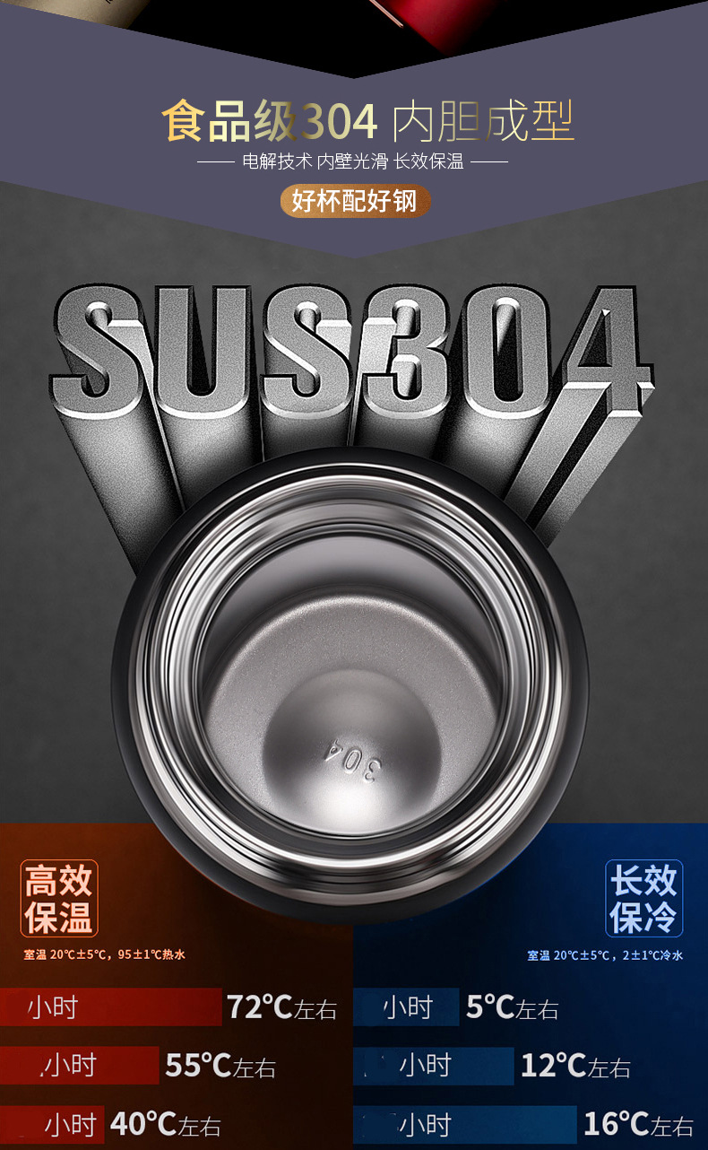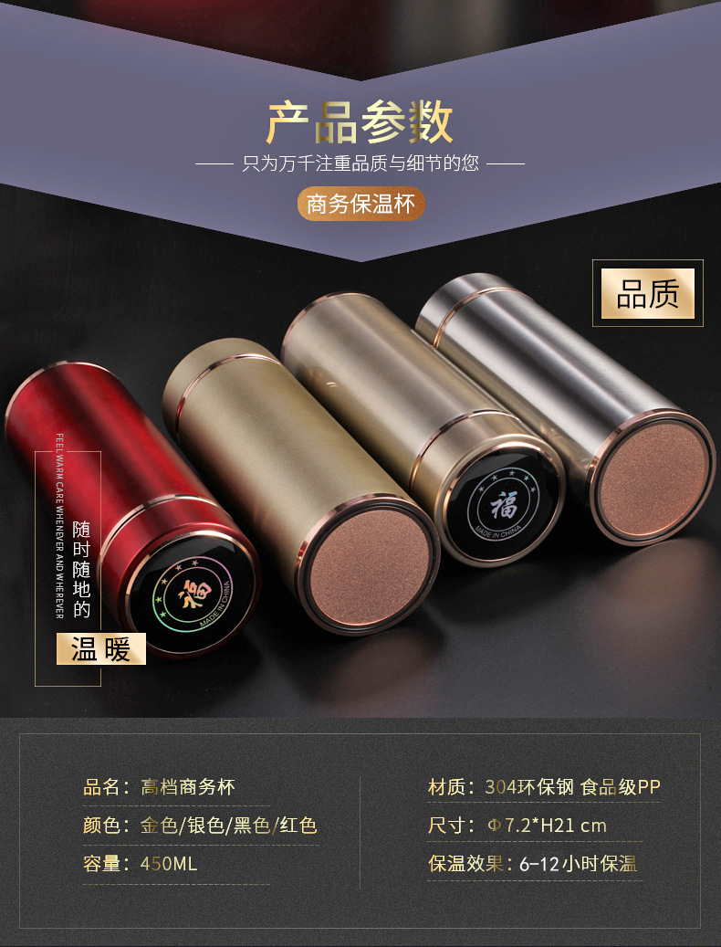 新款304高檔水杯不銹鋼真空保溫杯定制創意商務禮品杯
