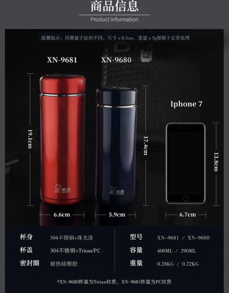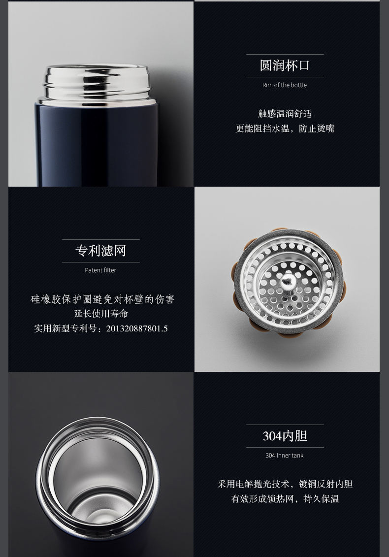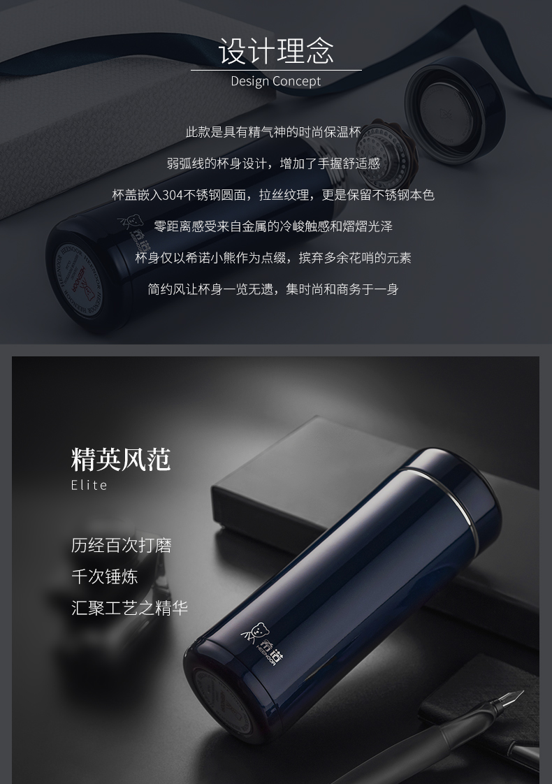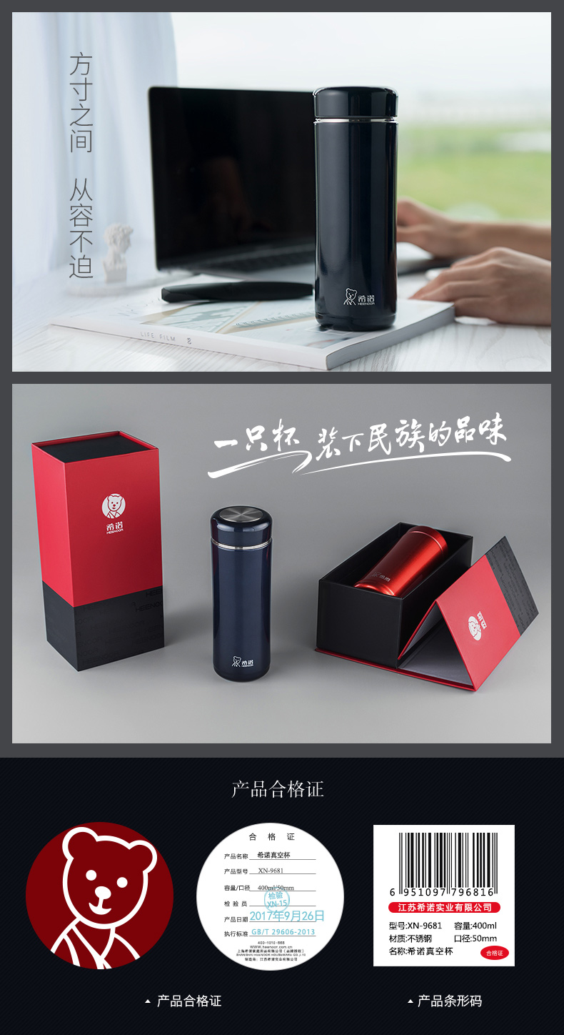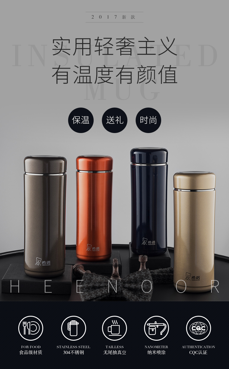 希諾保溫杯男女士大容量高檔商務(wù)茶杯304不銹鋼泡茶杯子便攜水杯