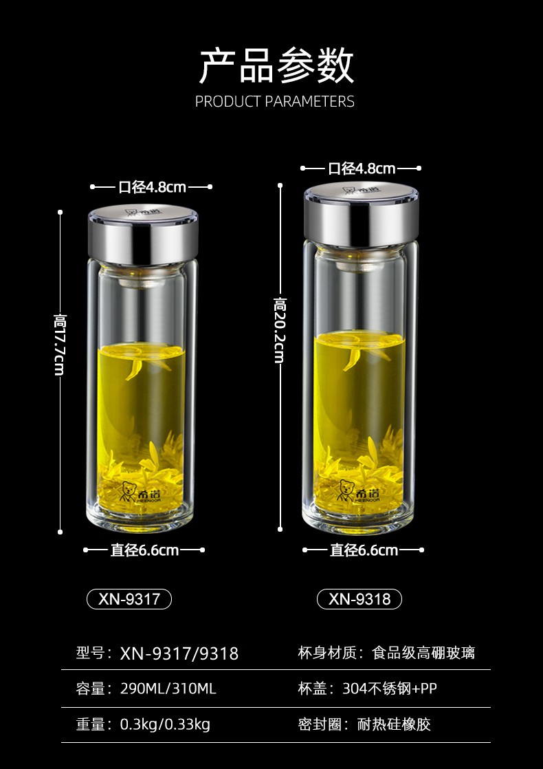 希諾雙層玻璃杯男女士家用高檔抗菌泡茶車載水杯隔熱茶杯透明杯子