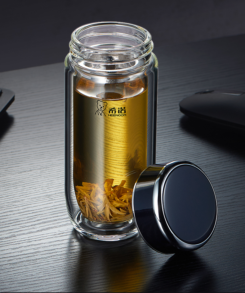 希諾雙層抗菌玻璃杯隔熱男女士高檔車載水杯便攜杯子帶濾網茶杯