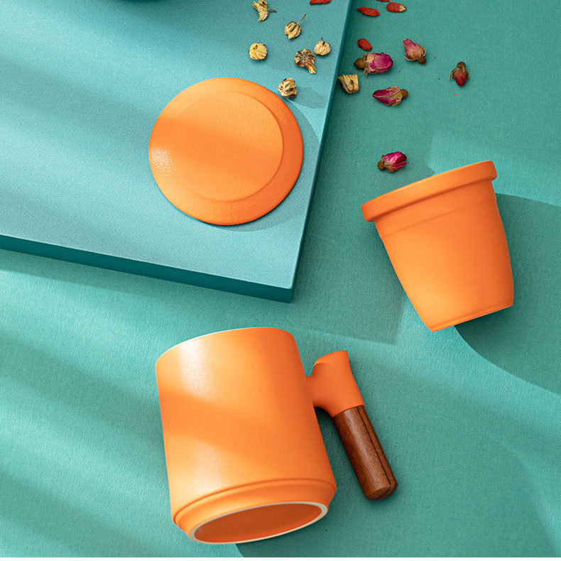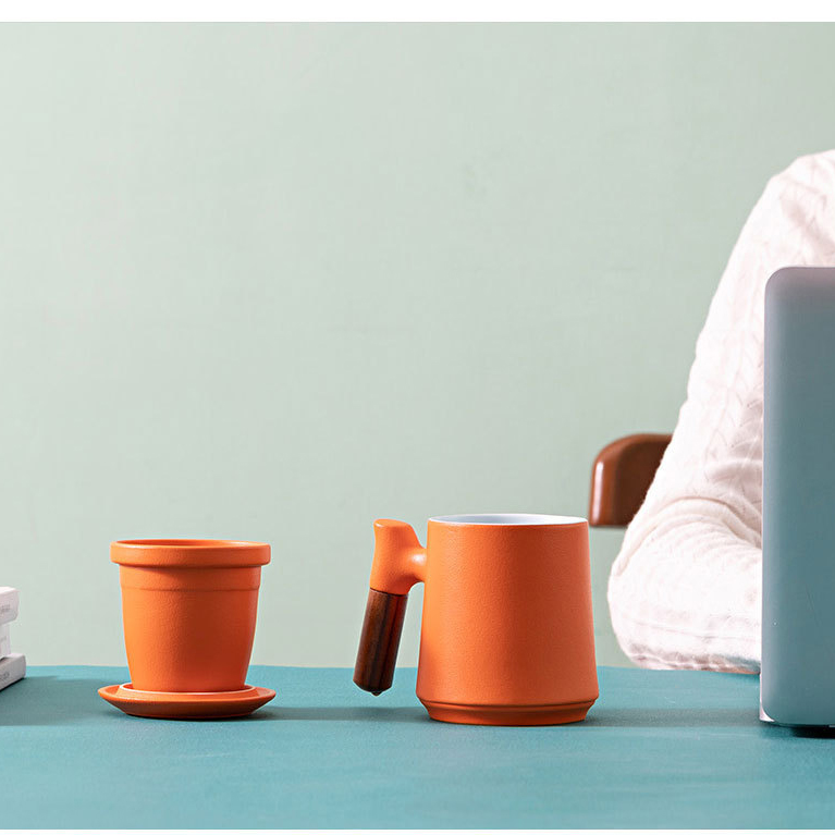 陶瓷馬克杯帶蓋過濾辦公杯個(gè)人杯茶水分離杯公司送禮禮盒刻字LOGO